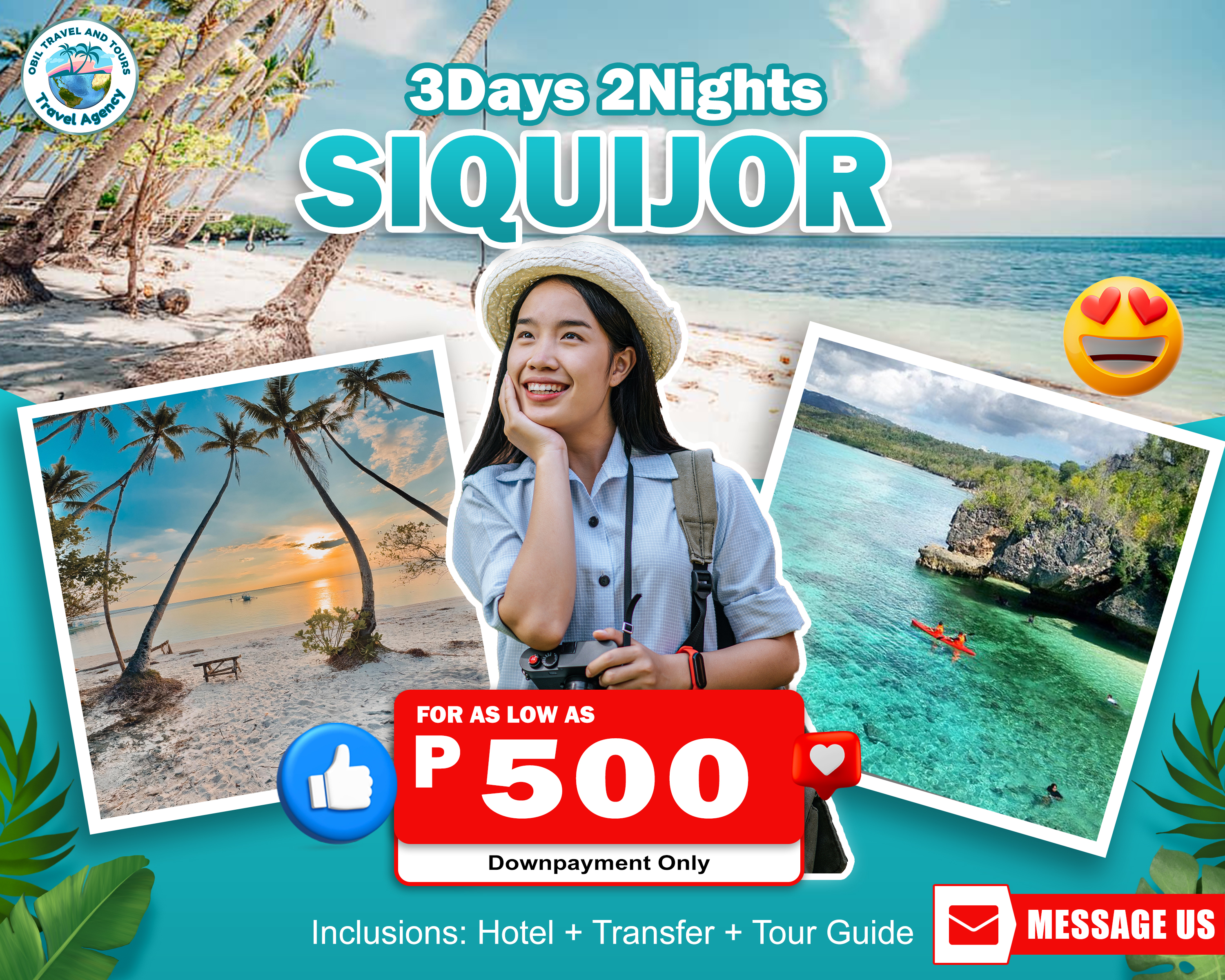 Experience stress-free travel with Obil Travel and Tours, your trusted partner for exploring Cebu, Bohol & Siquijor. We provide hassle-free planning, private and joiner tour options, comfortable hotel accommodations, seamless transfers, and expert local guides to ensure a smooth and enjoyable journey. With transparent pricing and personalized itineraries tailored to your preferences, we make every trip convenient, safe, and truly unforgettable.